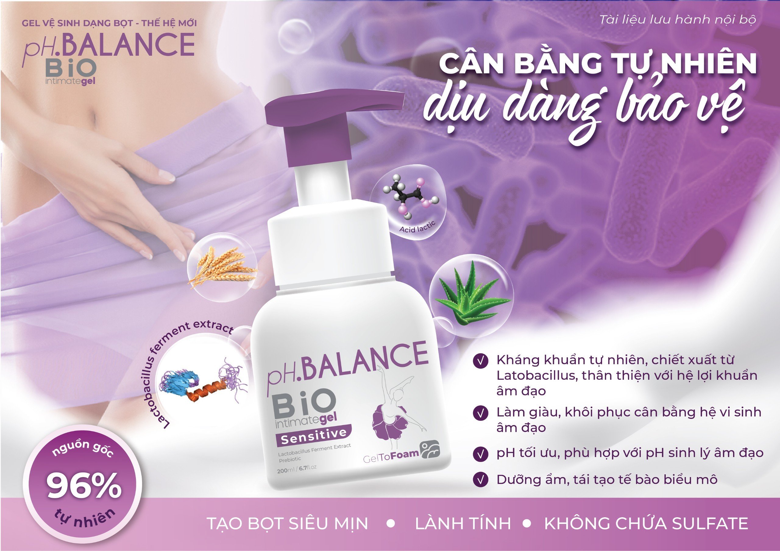Gel bọt pH. Balance Bio Intimate làm sạch vùng kín hàng ngày, cân bằng pH âm đạo (Chai 200ml)